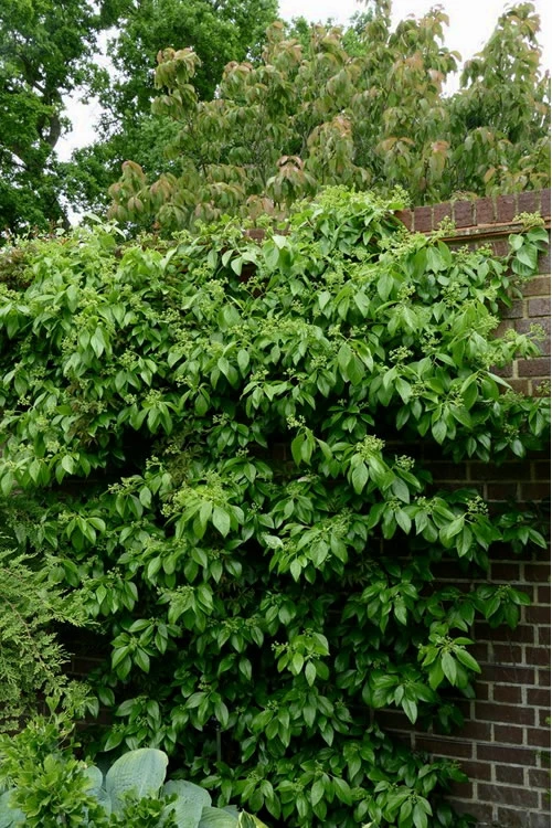 Fast growing, this beautiful vine climbs up to 5 feet a year to 30 or more feet in height attaching by rootlets to wood, brick and other surfaces. Great for climbing tree trunks!