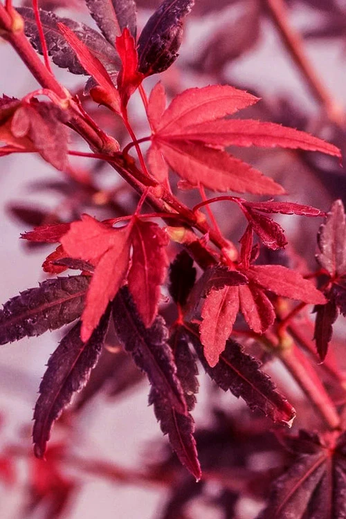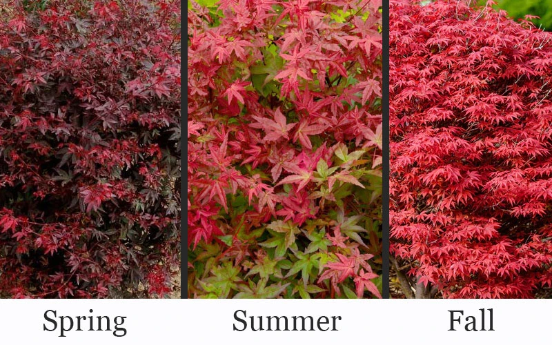 Foliage Color in Spring: Deep Maroon-Red with vivid Bright Red new leaves