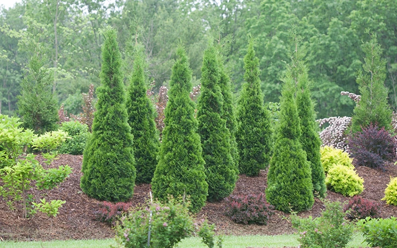 Spacing: 3-3.5′ apart for solid privacy screen or hedges; 8′ or more apart for space between plants