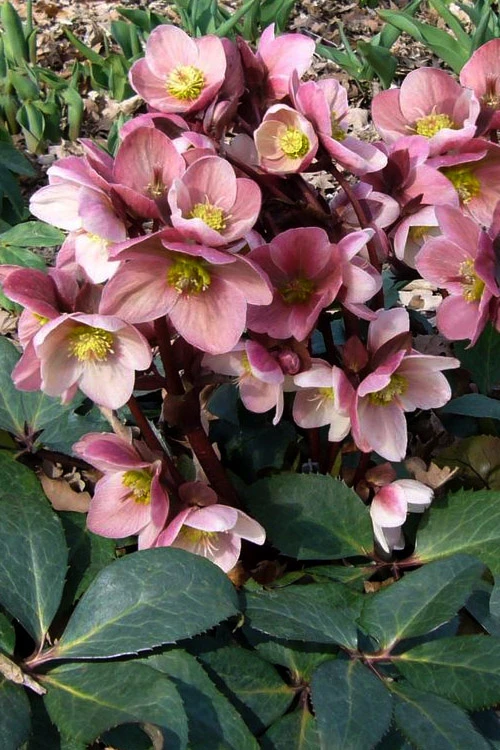 Growing 12 to 14 inches tall and 2 feet wide or more over time, the Pink Frost Helleborus is ideal for use as an accent in smaller spaces and containers or in groupings, massed as a groundcover in landscape and woodland borders, or as a low border along walkways and paths. Perfect under large shade trees, decks, covered porches and any other shady location. Don’t think you have any shade? Look on the east side of your home. A fine addition to shade gardens, winter gardens, beneficial pollinator gardens, pink theme gardens, cottage gardens, cut flower gardens and woodland gardens.