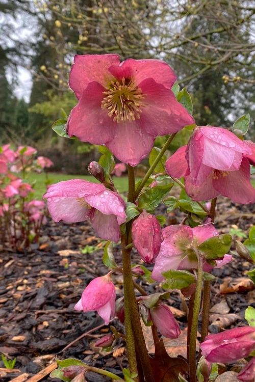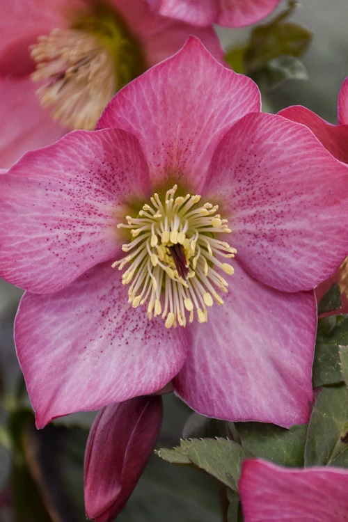 One of if not the brightest and cheery Helleborus in our gardens, Rosemary is one of those plants that will always have you looking forward to late winter. The most floriferous of Helleborus in our gardens, evening when young, Rosemary features loads of stunning, long-lasting pink flowers that emerge a lighter shade of pink transitioning to a darker rose pink color as the they age into spring. The color of these flowers make other pinks look dull in comparison, and they face outward rather than downward, which really helps to display the fresh color. Upon closer inspection, the petals display lighter pink veining and darker pink speckling and surround a prominent crown of contrasting yellow stamens. An excellent, long-lasting cut flower. As a hybrid between Helleborus niger and Helleborus hybridus, Rosemary displays incredible vigor and flower performance and is exceptionally easy to grow and long-lived in USDA Zones 4a-9b. Forming an attractive evergreen clump 18 to 24 inches tall in flower and equally as wide, this is a perfect plant in the ground or containers under large trees, decks and other shady areas.